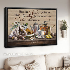 Croissants, Coffee cup, Coffee beans, Bless the food - Jesus Landscape Canvas Prints, Christian Wall Art