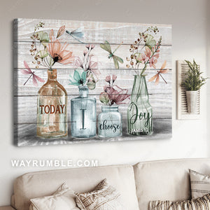 Crystal flower vase, Dragonfly drawing, Today I choose joy - Jesus Landscape Canvas Prints, Christian Wall Art