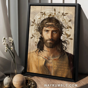 Across our canvas, it depicts an image of Jesus with a thorn crown and lovely white rose background. Its vintage color scheme makes it a versatile piece in nearly any style of home. Our Jesus Christ drawing, Thorn crown, White rose, Father forgive them - Jesus Portrait Canvas Prints, Christian Wall Art is wonderful artwork will suitable for any room in your house from the kitchen, bedroom and living room to outside space.