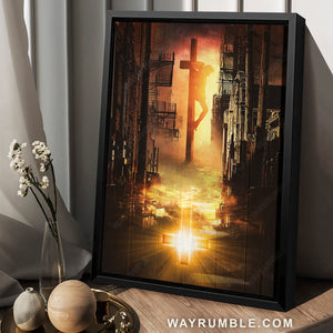 Jesus on the cross, Narrow way, Urban city, Light cross - Jesus Portrait Canvas Prints, Christian Wall Art