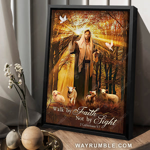 Make your home becomes more perfect with our Jesus painting, Lamb of God, Flying dove, Autumn forest, Walk by faith - Jesus Portrait Canvas Prints, Christian Wall Art. It depicts an incredible image of Jesus with the amazing Lamb of God and the flying doves in the autumn forest. Furthermore, the color scheme makes it a versatile piece in nearly any style of home. Our Jesus painting, Lamb of God, Flying dove, Autumn forest, Walk by faith - Jesus Portrait Canvas Prints, Christian Wall Art is also perfect for those who believe in Jesus. Let’s show your passion to visitors with this unique wall art which is hung on your wall.