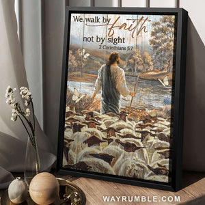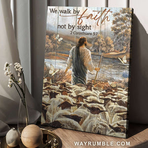 Jesus shepherd, Lambs of God, Mountain stream, We walk by faith - Jesus Portrait Canvas Prints, Christian Wall Art