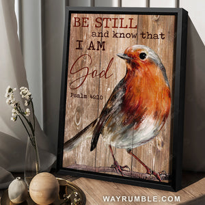 Across canvas, it depicts an image of a robin bird with the meaningful lyric from the Bible. Its vintage color scheme makes it a versatile piece in nearly any style of home. Our Robin bird, Robin bird painting, Bird drawing, Be still I am God - Jesus Portrait Canvas Prints, Christian Wall Art is wonderful artwork will suitable for any room in your house from the kitchen, bedroom and living room to outside space.