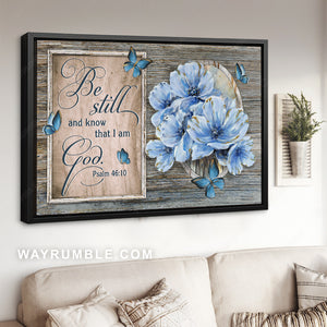 Spring blue flower, Butterfly drawing, Be still and know that I am God - Jesus Landscape Canvas Prints, Christian Wall Art