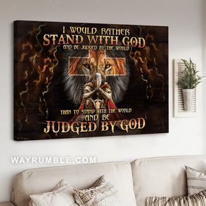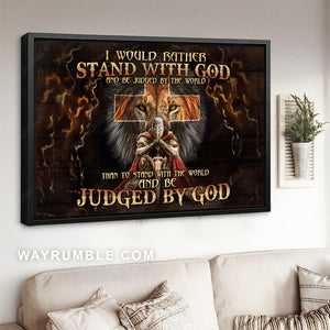 Stunning warrior, Amazing lion, Cross symbol, I would rather stand with God - Jesus Landscape Canvas Prints, Christian Wall Art