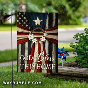 US flag, Flower crown, God bless this home - Jesus Flag