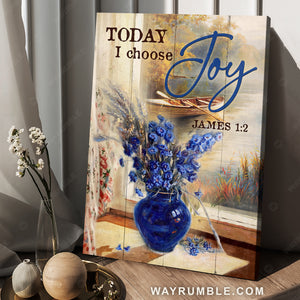 Violet vase, Lavender drawing, Wooden boat, Today I choose joy - Jesus Portrait Canvas Prints, Christian Wall Art matches well with a variety of wall decor styles and rooms.