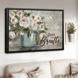 Watercolor rose, Newspaper background, Butterfly, Just breathe - Jesus Landscape Canvas Prints, Christian Wall Art