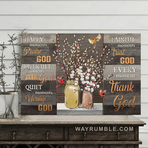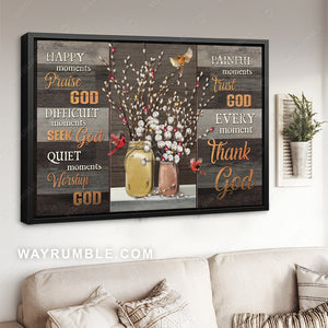 White cotton flower, Lucky cardinal, Every moment, Thank God - Jesus Landscape Canvas Prints, Christian Wall Art
