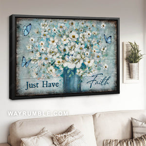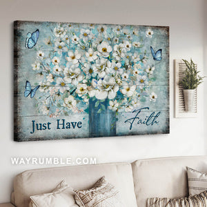 White flower, Blue butterfly, Just have faith - Jesus Landscape Canvas Prints, Christian Wall Art