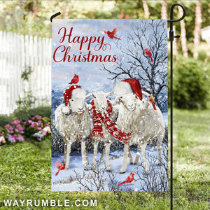 White goat painting, Winter forest, Red cardinal, Happy Christmas - Jesus Flag
