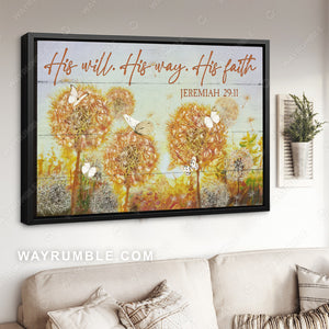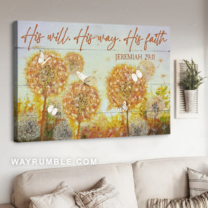 Yellow dandelion field, White butterfly, His will, His way, His faith - Jesus Landscape Canvas Prints, Christian Wall Art