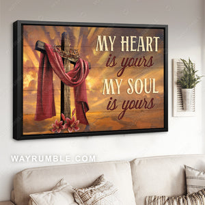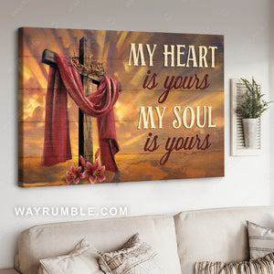Big cross, Crown of thorn, Red lily flower, My heart is yours, My soul is yours - Jesus Landscape Canvas Prints, Christian Wall Art