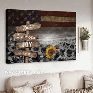 Black and white painting, Unique sunflower, US flag, Today I choose joy - Jesus Landscape Canvas Prints, Christian Wall Art