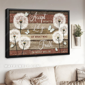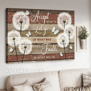 Brilliant dandelion field, White butterfly, Accept what is let go - Jesus Landscape Canvas Prints, Christian Wall Art