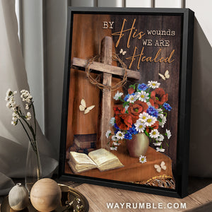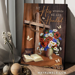 Brilliant flower vase, Crown of thorn, Bible, By his wounds, We are healed - Jesus Portrait Canvas Prints, Christian Wall Art