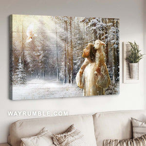Holy spirit dove, Lamb of God, Jesus painting, In a snowy forest - Jesus Landscape Canvas Prints, Christian Wall Art