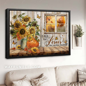 Jesus painting, Rustic sunflower, Pumpkin drawing, Fall for Jesus, he never leaves - Jesus Landscape Canvas Prints, Home Decor Wall Art