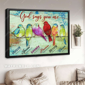 Little birds, Colorful bird painting, God says you are - Jesus Landscape Canvas Prints, Christian Wall Art