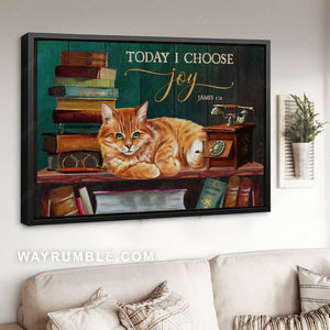 Orange fluffy cat, Stack of books, Landline phone, Today I choose joy - Jesus Landscape Canvas Prints, Christian Wall Art