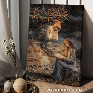 Reading girl, God know, Jesus painting, Crown of thorn - Jesus Portrait Canvas Prints, Christian Wall Art