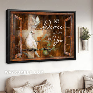 White dove symbol, Green tree, Antique window, My peace I give to you - Jesus Landscape Canvas Prints, Christian Wall Art