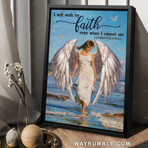 Beautiful girl, Stunning angel wings, Ocean view, I will walk by faith - Jesus Portrait Canvas Prints, Christian Wall Art