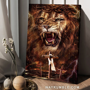 Add a hint of wonderlust to your walls with this Awesome lion head, Lion of Judah, Crown of thorns, Three wooden crosses - Jesus Portrait Canvas Prints, Christian Wall Art. Across our artwork, it depicts an image of a beautiful Lion of Judah with a crown of thorns and three rugged crosses that will bring a sense of peace to your soul. Furthermore, the color scheme makes it a versatile piece in nearly any style of home. Awesome lion head, Lion of Judah, Crown of thorns, Three wooden crosses - Jesus Portrait Canvas Prints, Christian Wall Art is also perfect for those who believe in Jesus. Let’s show your passion to visitors with this unique wall art which is hung on your wall in any room from the living room, bedroom, kitchen to the entryway in your house or your office, building, hotel, restaurant and even the coffee shop,...