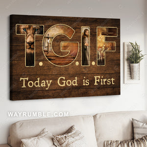 Lion of Judah, Lamb of God, Old rugged cross, Today God is First - Jesus Landscape Canvas Prints, Christian Wall Art