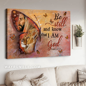Monarch butterfly, Lion of Judah, Be still and know that I am God - Jesus Landscape Canvas Prints, Christian Wall Art