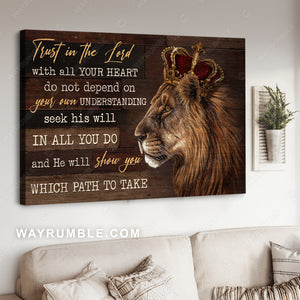 Amazing lion, Luxury crown, Trust in the Lord with all your heart - Jesus Landscape Canvas Prints, Home Decor Wall Art