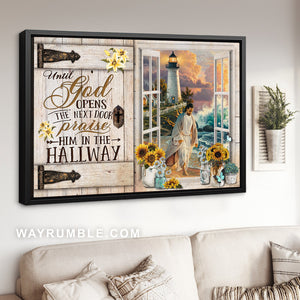 Amazing ocean, Jesus walking on water, Sunflower, Until God opens the door - Jesus Landscape Canvas Prints, Home Decor Wall Art