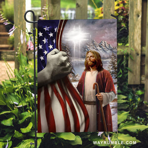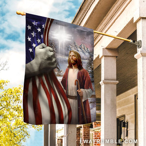 American flag, Jesus painting, Great cross, Winter season, Snow valley - Jesus Flag