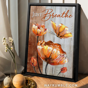 Let’s lighten your house up with this amazing Anemone flower, Beautiful butterfly, Just breathe - Jesus Portrait Canvas Prints, Christian Wall Art. This painting has been designed with stunning anemone flowers surrounded by a beautiful orange butterfly and meaningful, soothing-for-soul words will bring warmth to your house.