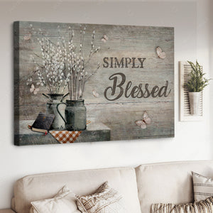 Baby flower vase, Antique bible, White butterfly, Simply blessed - Jesus Landscape Canvas Prints, Christian Wall Art