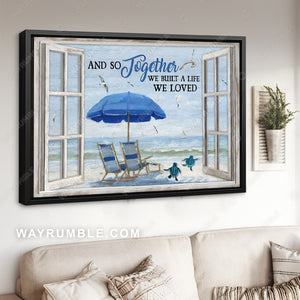 Beautiful beach drawing, Blue summer, And so together we built a life we loved - Family Landscape Canvas Prints, Wall Art