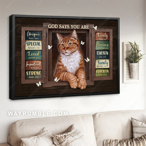 Beautiful cat, White butterfly, God says you are unique - Jesus Landscape Canvas Prints, Home Decor Wall Art