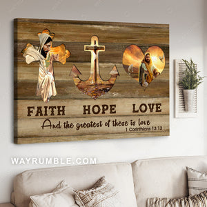 Golden anchor, Jesus painting, Jesus symbol, Faith Hope Love - Jesus Landscape Canvas Prints, Christian Wall Art